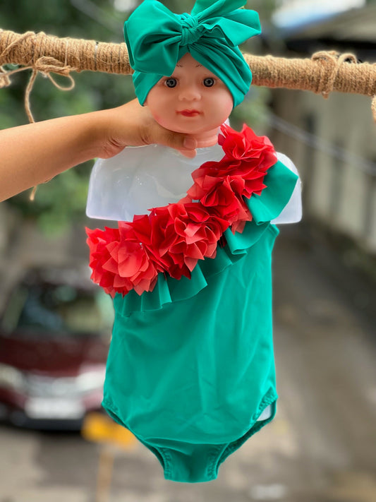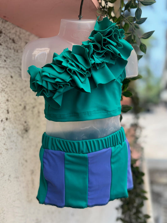Green Ruffled One Shoulder Set