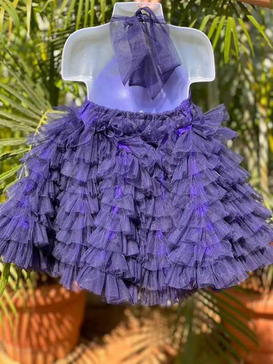 Blue Ruffled Halter Dress