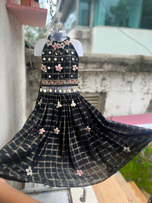 Freya Black Checkered Lehenga Set
