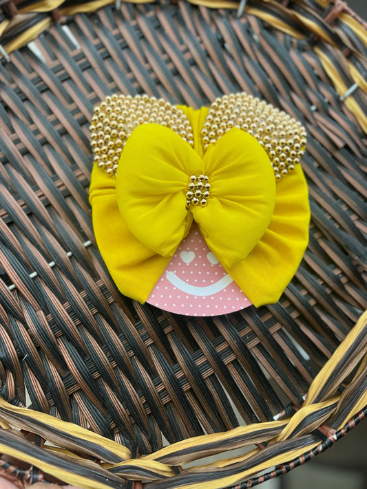 Yellow Fringe Bow Turban